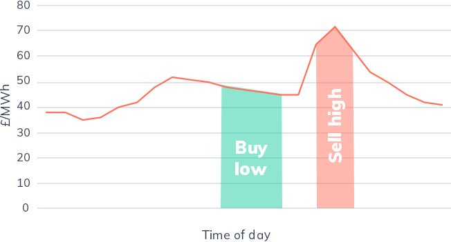 It is therefore possible to buy energy at low prices during the day, and then sell this energy at higher prices during the evening. This process is called 'arbitrage'.